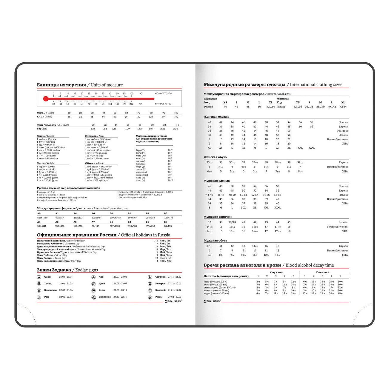 Внутренний блок включает 160 листов белой бумаги плотностью 70 г/м2. Каждая страничка имеет перфорированный угол. Благодаря стандартному формату А5 ежедневник удобно использовать как в офисе, так и на выездных деловых встречах.