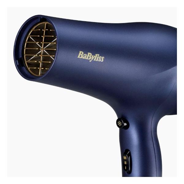 Фен Babyliss 5781PE с функцией ионизации используется для подсушивания волос в одном из трех температурных режимов, путем подачи холодного воздуха. Модель оснащена DC-двигателем, который выдает максимальную мощность — 2300 Вт. Корректировать скорость воздушного потока можно с помощью механических переключателей.