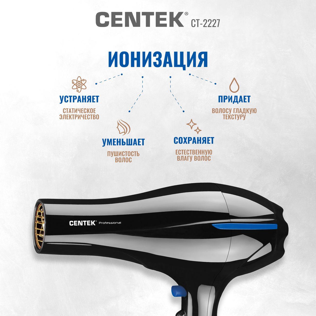 Вы можете купить Фен Centek CT-2227 в магазинах М.Видео по доступной цене. Фен Centek CT-2227: подробное описание, фото и отзывы реальных покупателей, характеристики, возможность скачать инструкции и подобрать аксессуары.