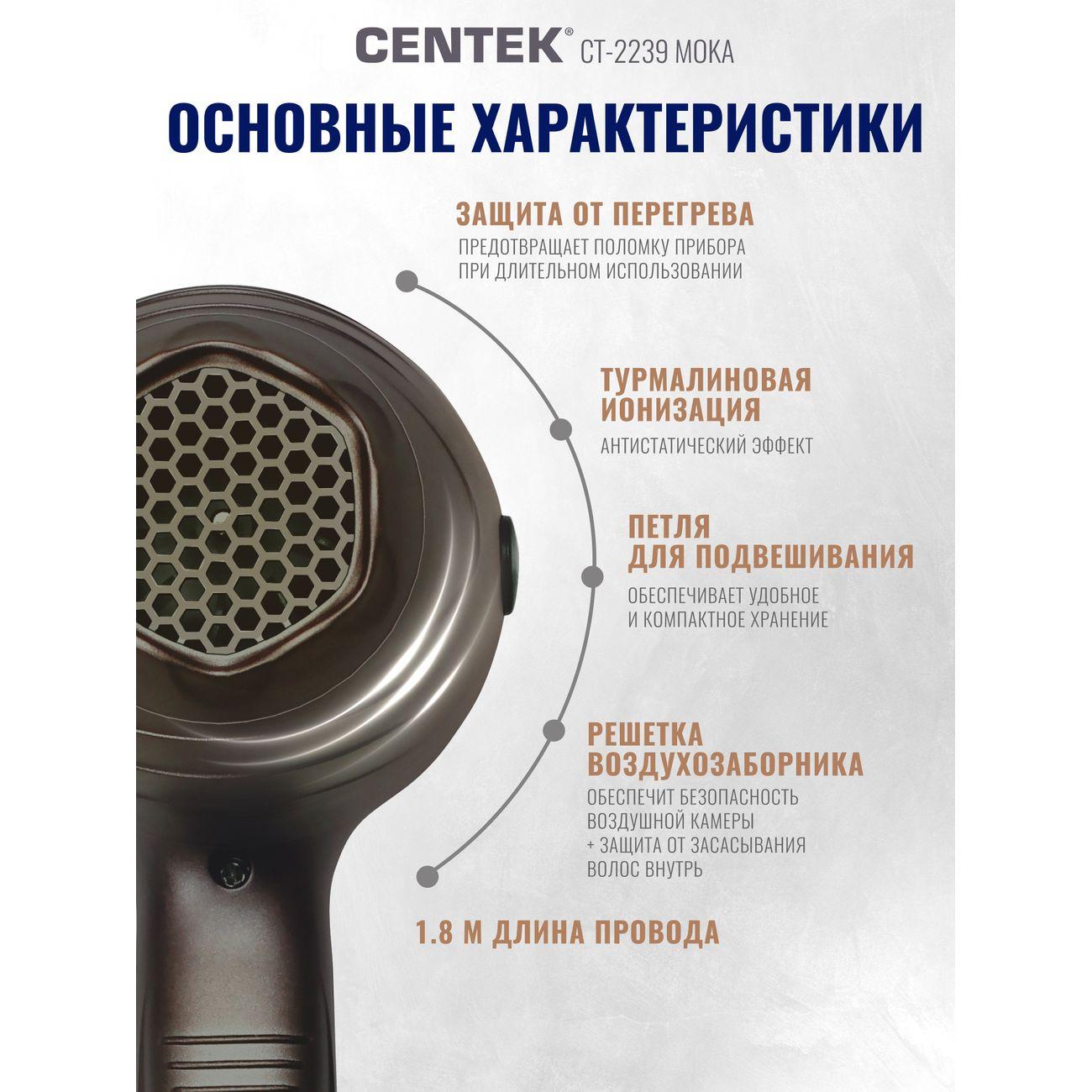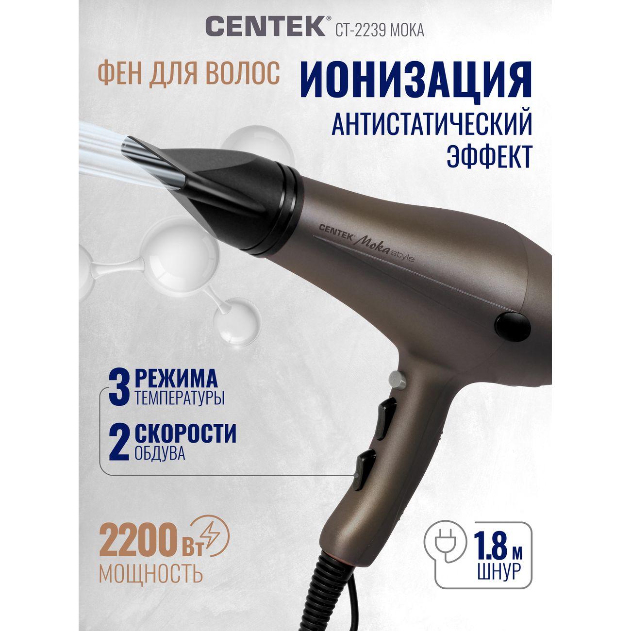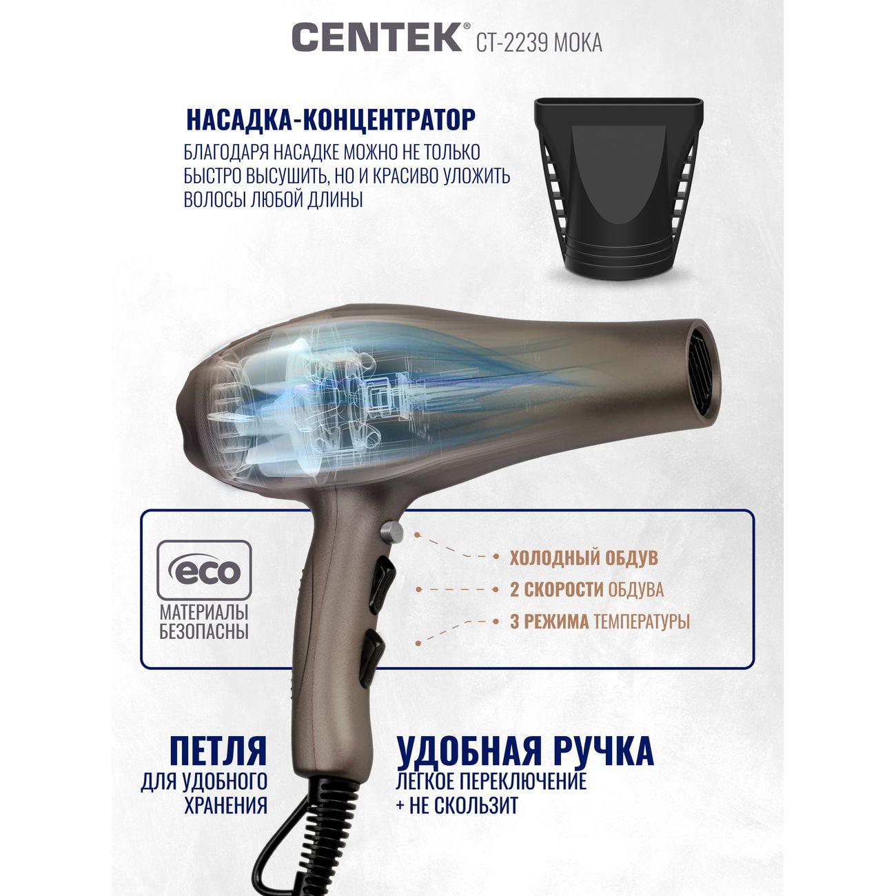 Вы можете купить Фен Centek CT-2239 Moka в магазинах М.Видео по доступной цене. Фен Centek CT-2239 Moka: подробное описание, фото и отзывы реальных покупателей, характеристики, возможность скачать инструкции и подобрать аксессуары.