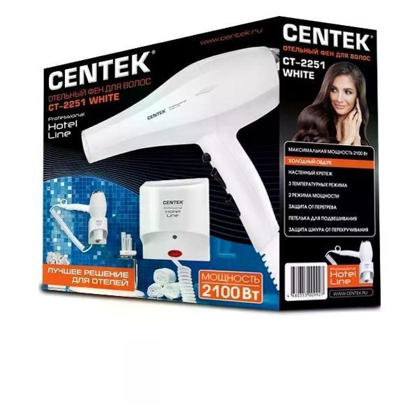 Устали от долгой сушки и непослушных волос? Есть решение, которое сделает процесс быстрым и комфортным. По сравнению с конкурентами фен Centek демонстрирует лучшую защиту волос от пересушивания. Стайлер отличается современным дизайном и простым управлением. Популярность фена-щетки объясняется его практичностью и долговечностью. Фен Centek - это умное решение для современного ухода за волосами. Он легко справляется с любым типом волос и станет вашим надежным помощником в создании идеальной укладки. Эта модель пользуется спросом у покупателей. Фен Centek СТ-2251 White поможет быстро высушить и красиво уложить волосы любой длины. Подача холодного воздуха для закрепления укладки. Встроенная система турмалиновой ионизации предотвращает появление статического электричества, придает волосам блеск и ухоженный вид. Имеется петля для подвешивания. Белый глянцевый корпус выполнен из термостойкого пластика. Фен работает в двух режимах интенсивности подачи воздуха и в трех режимах нагрева. Безопасность использования фена Centek CT-2251 White обеспечивается благодаря наличию защиты от перегрева. Защита шнура от перекручивания. Съемная крышка фильтра. Для питания фена используется бытовая электрическая сеть. Главная особенность фена – стационарное крепление. Использование устройства четко ограничено длиной провода, который интегрирован в базу. В общественных местах, где наличие фена необходимость, такая ограниченная мобильность является основной гарантией сохранности прибора. Сферы применения настенного фена: гостиницы; сауны и бассейны; спортивные комплексы; больницы, медицинские центры и косметологические кабинеты. Использование настенного фена в квартире встречается реже, хотя его монтаж имеет определенные преимущества. Приобретение и установка данного устройства поможет решить проблему с хранением в перерывах эксплуатации. Фен укомплектован комплектом монтажа Технические характеристики: Мощность - 2100 Вт. Кол-во скоростей - 2. Кол-во режимов - 3.