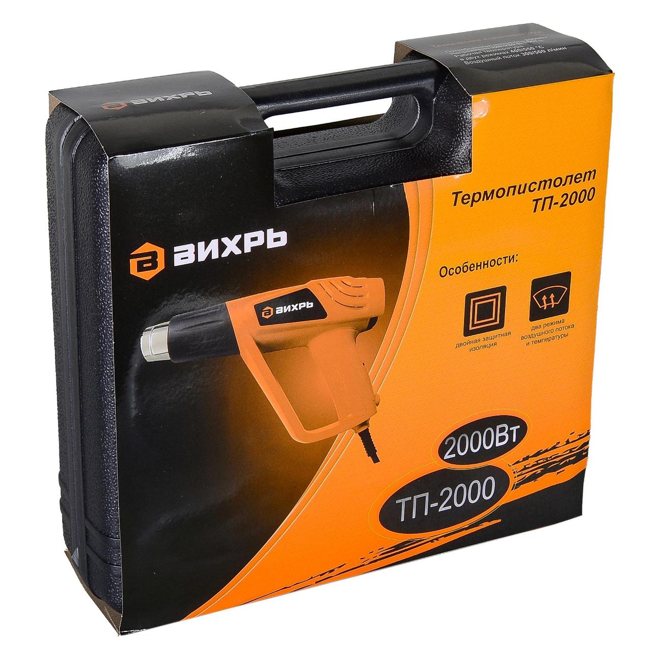 Строительный фен «Вихрь» ТП-2000 — специализированный инструмент, который используется для нагрева разнообразных поверхностей при помощи струи нагретого воздуха. С его помощью удобно удалять старые обои и остатки лакокрасочного покрытия, отогревать трубопроводы и память пластиковые детали.