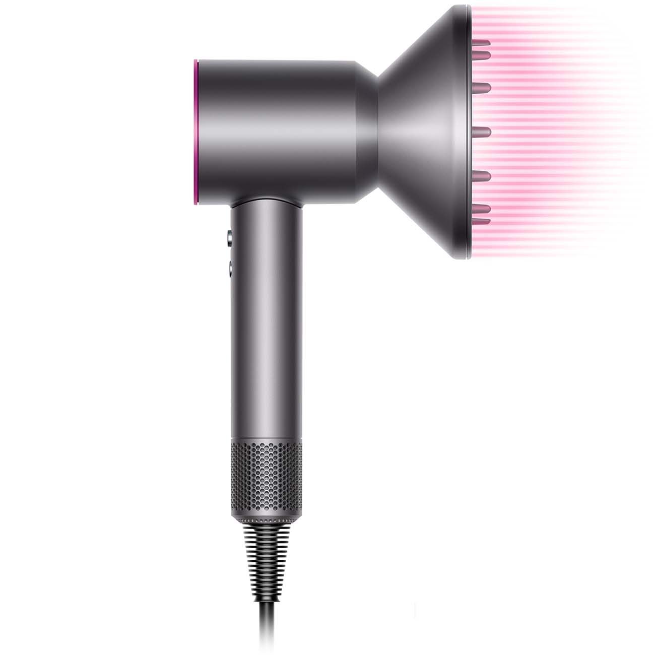 Фен Dyson Supersonic HD01 построен по технологии Air Multiplier. Он подаёт очень мощные потоки воздуха, которые быстро высушивают волосы. К нему прилагаются профессиональные насадки для укладки – в том числе узкий концентратор для работы с отдельными прядями и диффузор для увеличения прикорневого объёма.