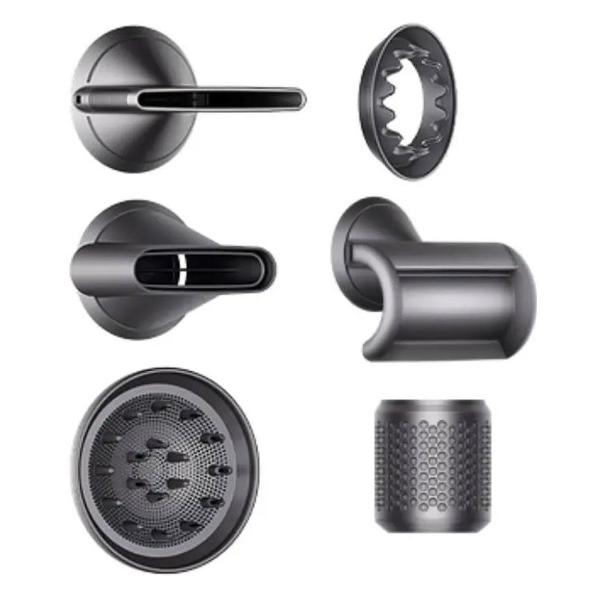 Фен Dyson HD12 Pro Silver оснащен ЕС-двигателем с цифровым управлением мощностью 1600 Вт. При перегревании модель автоматически выключается. Прибор работает от электросети напряжением 220 В, длина кабеля с вилкой-переходником составляет 3,35 м.