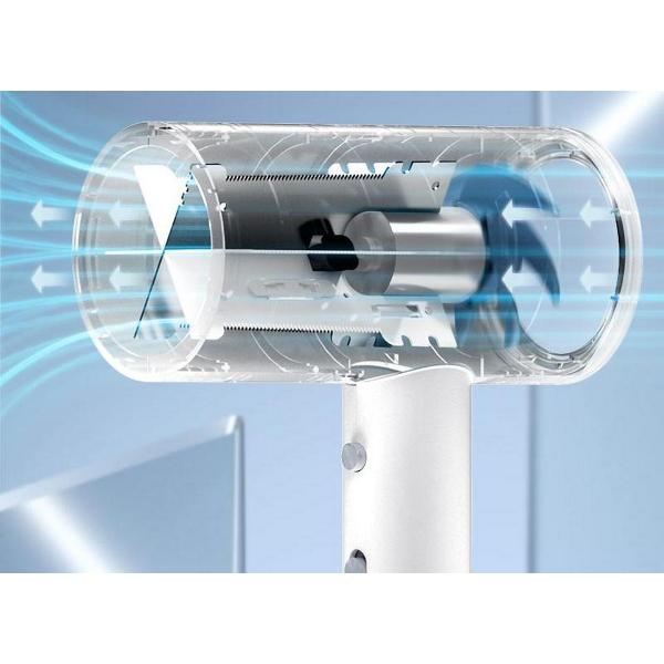 Корпус фена Enchen Air 5 сделан из ударопрочного термостойкого пластика. Устройство обладает мощностью 1800 Вт, оборудовано надежным DС-мотором. В прибор заложены два температурных режима, функции подачи холодного воздуха и ионизации.