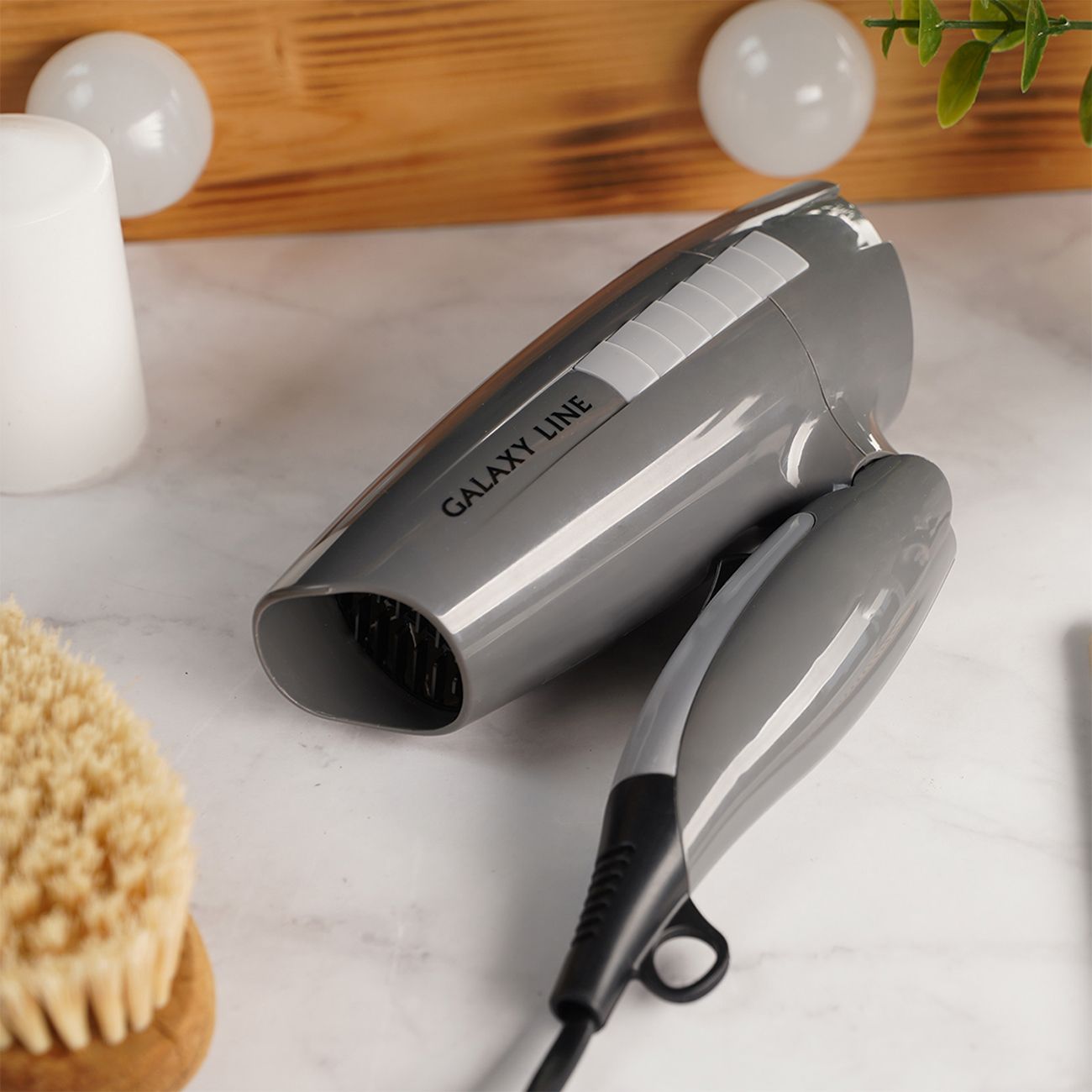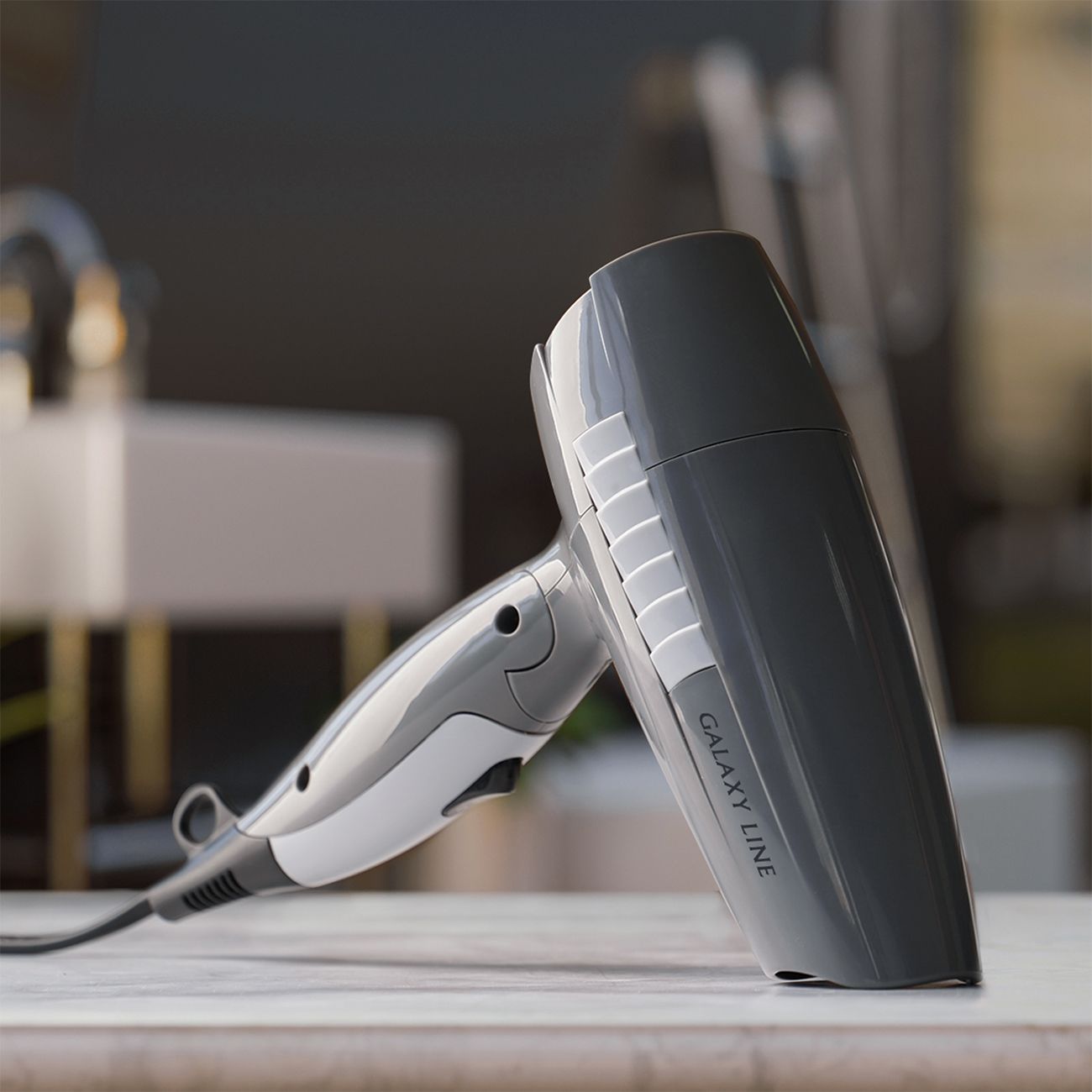 Фен Galaxy Line GL4337 — модель с двумя режимами работы, регулировка скорости потока и температуры зависимая. Мощность устройства достигает 1200 Вт. Пластиковый корпус окрашен в черный и серый цвета. Эргономичная ручка не скользит в ладони, обеспечивая максимальный комфорт и контроль над феном для точечной сушки. При необходимости ее можно сложить, что упростит хранение и транспортировку прибора. Предусмотрена петля для подвешивания на крючок. Длина шнура для подключения к сети составляет 1,7 м. Размеры модели — 20х8х13 см, вес — 430 г.