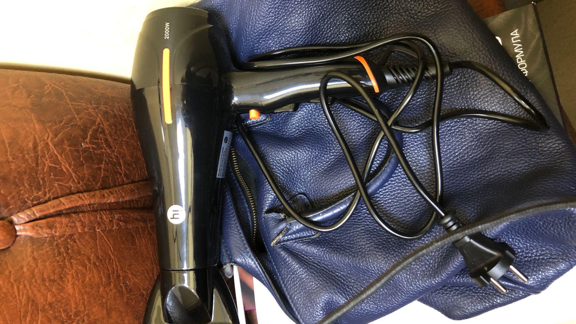 Тяжёлый вес, весит как 2 фена. Неудобная короткая ручка, кнопки переключения прямо под пальцами и когда держишь фен, то постоянно нажимаешь на эти кнопки. После нескольких раз использования, всё ещё пахнет неприятно при включении теплого воздуха. Очень шумный, просто оглушает своим шумом.