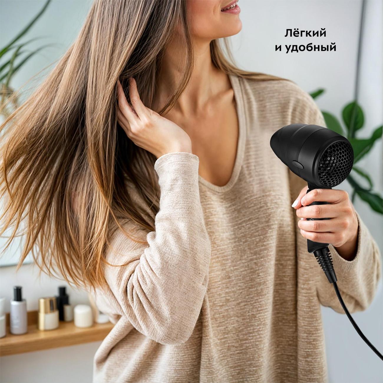 Отличный агрегат, подойдёт для дороги, бассейна, для малогабаритных ящиков, где хранится фен. Очень кстати и комплект: прозрачный чехол, щётка и расчёска. Хотелось бы выбор цвета и чтобы направитель воздуха снимался, иногда это нужно. Но это мелочи, в целом, очень хороший аппарат, рекомендую.