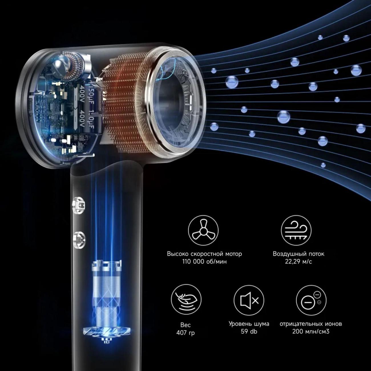 Мощный, высушивает очень быстро , и при укладке со всем справляется, лёгкий, удобное управление, прочный (падал несколько раз на кафель), насадки держатся великолепно, эргономичность корпуса и насадок на 5 +, не перегревается.