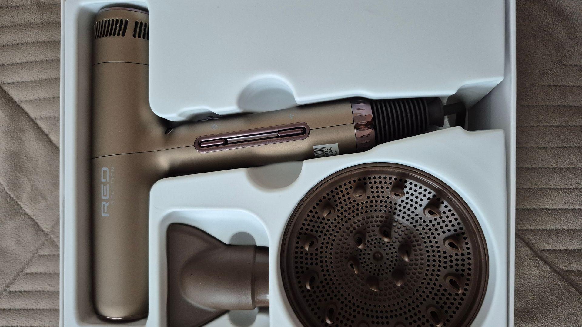 Пользуюсь феном для сушки ежедневно. Старый фен сгорел, пришлось идти и срочно покупать новый. Изначально на сайте выбрала другой. Но когда пришла в магазин, девушка-продавец-консультант показала фен фирмы Red Solution. Фен очень легкий, компактный, удобно держать в руке. Лаконичный и стильный дизайн. Три режима температуры и выдува. Достаточно мощный, волосы сушит очень быстро. Не пересушивает и не электризует. В то же время тихий, что немаловажно. если пользуешься каждое утро и не хочешь будить домочадцев)) В наборе есть диффузор и концентратор. Да, кстати, среди подобных фенов в магазине только у этого была система самоочистки (обратного выдува) - очень удобно. Фен очень понравился, берите - не пожалеете. Фирма Red Solution как всегда порадовала. Особенно приятно, что была скидка на данную модель.
