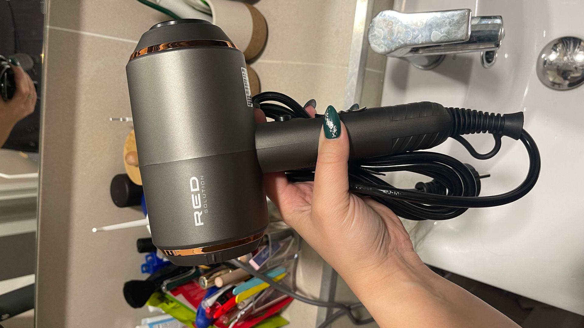Тяжелый. Очень устают руки сушить длинные волосы. В комплекте одна насадка и она постоянно слетает, не держится. На холодном еще более менее, но при использовании с горячим воздухом тут же слетает. Нет защиты от попадания волос собратной стороны, несколько раз дочерью чуть не лишились волос. Нет теплого режима подачи воздуха, либо холодный, либо нереально горячий воздух. Сгорел через год и два месяца. Просто при сушке волос задымился внутри.