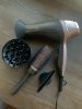 Создает приятный поток воздуха, в комплекте много насадок и хорошая расчёска, удобный в работе, работает достаточно тихо, имеет много различных режимов, не тяжелый, с длинным шнуром (1.8 метра), также есть полезная функция автоматического отключения при перегреве.