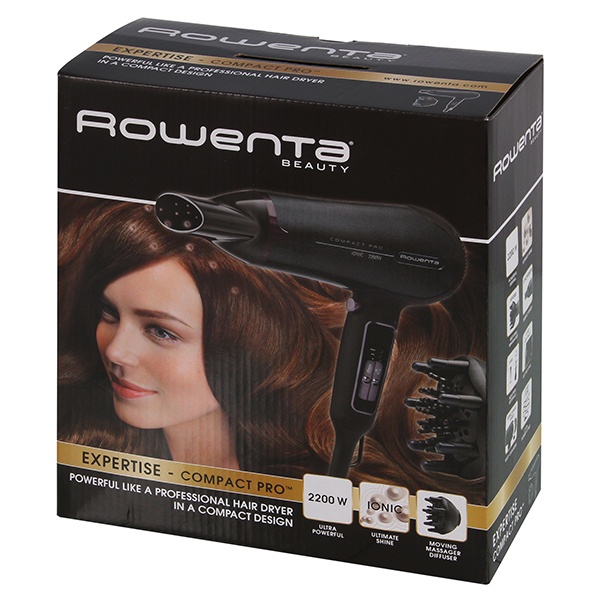 Rowenta Compact Pro CV4731D0 – профессиональный фен, который подходит не только для сушки волос, но и для создания оригинальных причёсок. Две насадки в комплекте (концентратор и диффузор), а также независимая регулировка температуры и скорости воздушного потока позволяют делать с его помощью укладку, придавать локонам объём.