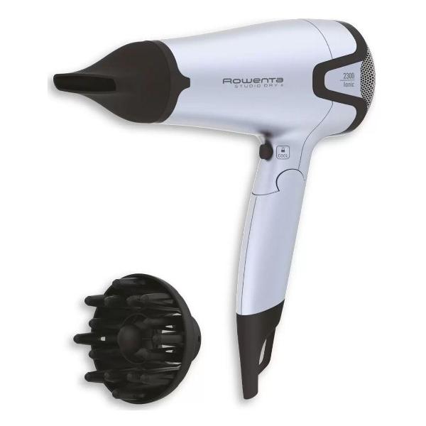 Фен Rowenta CV5440 отличается высокой мощностью 2300 Вт. Температура и скорость воздушного потока настраиваются на шести уровнях. Дополнительно предусмотрена функция ионизации для снижения статического электричества и получения блеска волос. В комплект входят две насадки — диффузор и концентратор. На корпусе сделана петля для подвешивания. Ручка фена складывается. Длина провода составляет 1,8 м.