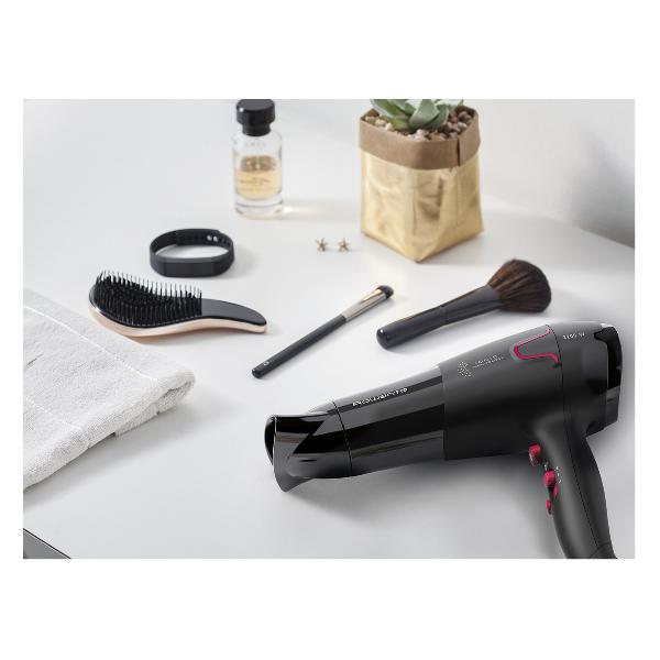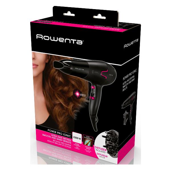 Фен Rowenta Power Pro Ionic CV5623F1 в корпусе черного цвета работает от электрической сети и потребляет 2200 Вт. Ионизация снимает с волос статическое электричество, делает их гладкими и блестящими. У фена три температурных режима работы и две скорости подачи воздушного потока.