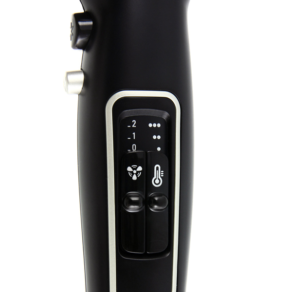 С боковой стороны корпуса находятся кнопки управления температурой воздуха и скоростью подачи. Оптимальное расположение элементов управления позволяет легко менять режимы в процессе сушки, а большой выбор настроек даёт возможность выбрать наилучшие параметры для каждого типа волос.