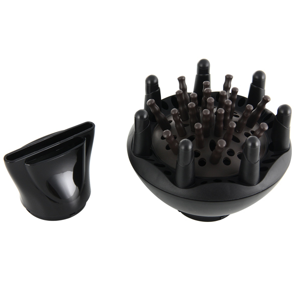 В комплекте с феном идут 2 насадки. Насадка-концентратор предназначена для точной и аккуратной сушки и укладки волос. Активный диффузор позволяет придать объём у корней, а также быстро высушить волосы при необходимости. Кроме того, с его помощью можно создать красивые вьющиеся локоны.