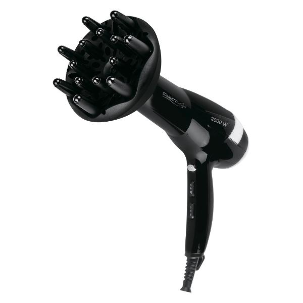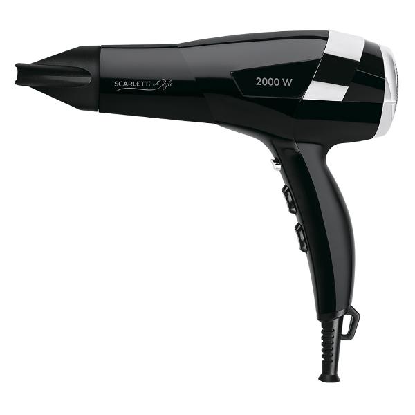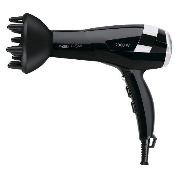 Фен Scarlett SC-HD70I45 поставляется в комплекте с двумя насадками: стандартным концентратором для обработки прядей любой длины и толщины и специальным диффузором для сушки кудрявых волос. Корпус устройства сделан из пластика, оборудован петлей для подвешивания. Вес равен 600 г. Встроен сетевой кабель длиной 1,8 м. Напряжение питания — 220 В. Максимальный показатель потребляемой мощности не превышает 2000 Вт. Доступно три температурных режима устройства и функция регулировки скорости воздушного потока. При перегреве двигателя фен отключается автоматически.