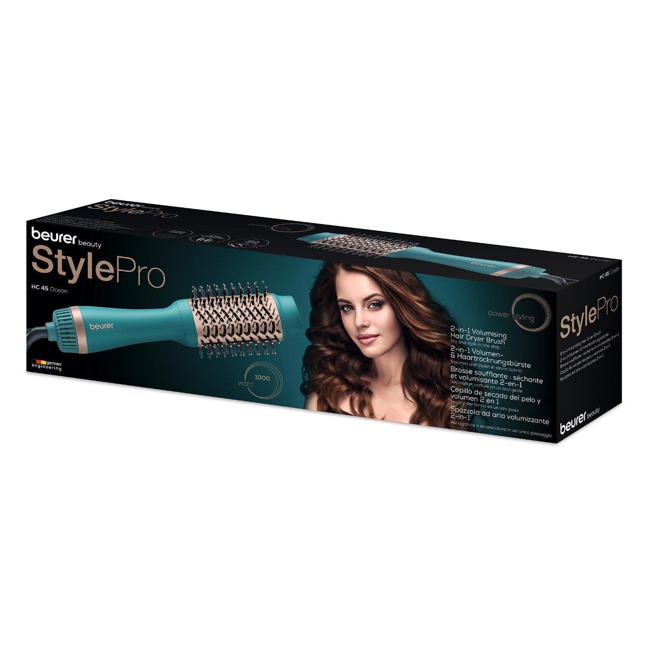 Фен-щетка Beurer HC45 мощностью 1000 Вт позволяет одновременно сушить и укладывать волосы, создавая объем и вытягивая пряди. Модель оснащена двумя температурными и двумя скоростными режимами, в том числе холодным обдувом, позволяющим фиксировать укладку. Функция ионизации предотвращает пересушивание волос и появление статического электричества.