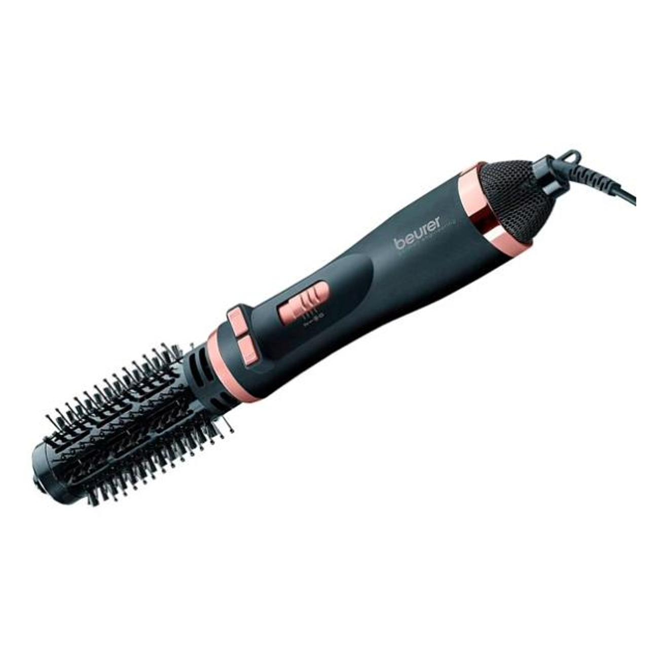 Фен-щетка Beurer HT 80 с функцией вращения насадок влево и вправо (две скорости) работает от электросети, длина сетевого кабеля составляет 1,8 м. Модель оснащена DC- двигателем мощностью 1000 Вт. Этот фен позволяет выпрямить волосы, сделать прикорневой объем, укладку и даже завить локоны. Две круглые насадки с керамическим покрытием диаметром 40 мм и 50 мм поставляются в комплекте.
