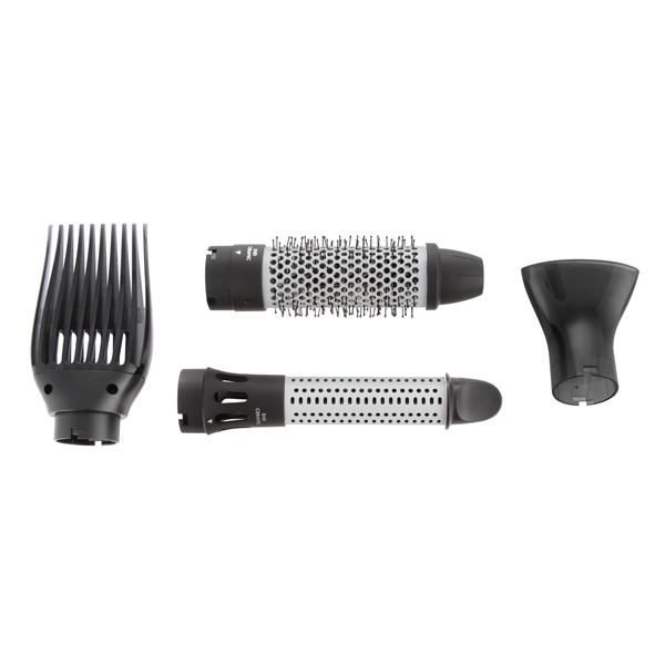 Этот удобный фен-щетку можно использовать как в качестве щетки для укладки, так и для завивки волос. При нажатии кнопки зубчики втягиваются в щетку, и таким образом можно легко извлечь стайлер из волос. В результате формируются превосходные упругие локоны.
