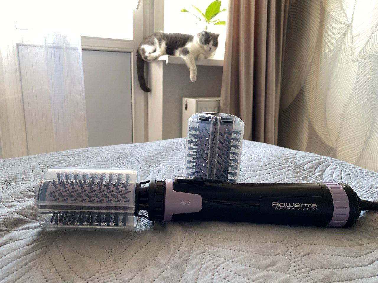 Всё замечательно, фен хороший, удобный. Много лет пользуюсь именно таким фен-щетками, раньше тоже пользовалась данной фирмой всё устраивало, но в этом есть маленький минус, слишком мягкие щетинки на насадках, при моей густате волос, не смотря на то что я укладывала волосы беря очень тонкие пряди при средней длины волос, щетинки просто все легли, думаю что через месяц пользования феном они станут совершенно бесполезны. и по времени побила все рекорды укладка заняла 40 минут