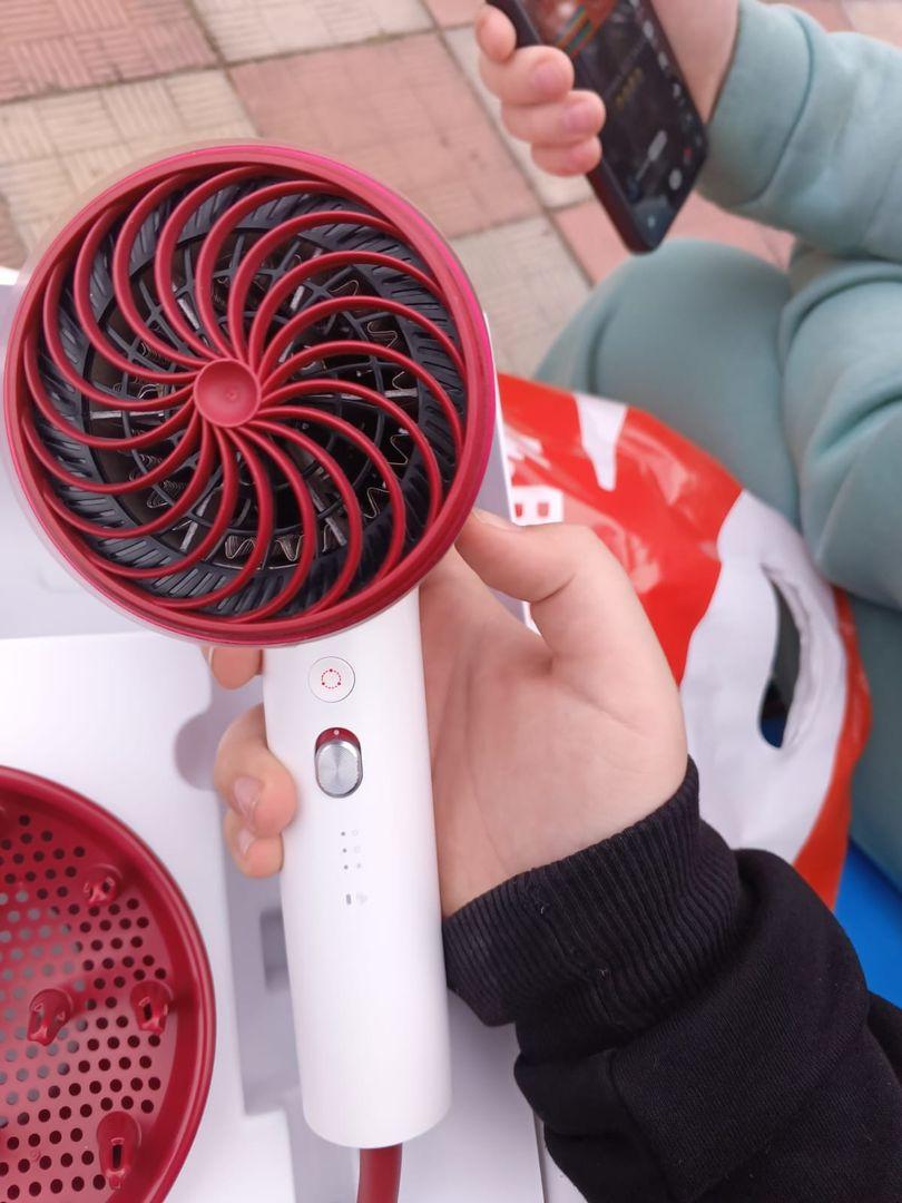 Красивый фен, который приносит удовольствие от пользования им. Сушит длинные волосы быстро, подача воздуха бережная. Относительно бесшумный, если сравнивать с феном, который использовала до этого (обычный стандартный мощный фен). Имеет несколько режимов и что очень удобно, ведь пользуюсь феном не одна и каждому нравится свое. Приятная была скидка на покупку, потому что изначально добавила в корзину за 3500, а при оплате на кассе обнаружилось, что стоит 2999. Неожиданно и приятно.
