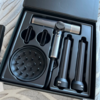 В комплект входят пять насадок: две циклонические насадки — для формирования локонов разного диаметра, концентратор — для быстрой сушки, массажная щетка — для стимуляции кожи головы и термоперчатка — для безопасной работы с горячими элементами. Насадки фиксируются магнитным креплением и легко меняются во время укладки.