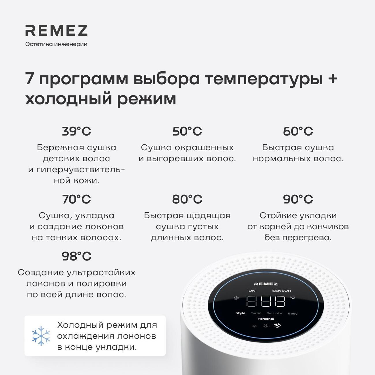 Вы можете купить Фен-стайлер Remez Модель S+ Сенсор RMB-708BS в магазинах М.Видео по доступной цене. Фен-стайлер Remez Модель S+ Сенсор RMB-708BS: подробное описание, фото и отзывы реальных покупателей, характеристики, возможность скачать инструкции и подобрать аксессуары.