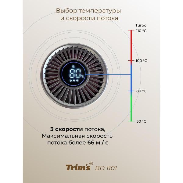 Вы можете купить Фен Trims Trim`s-BD1101 в магазинах М.Видео по доступной цене. Фен Trims Trim`s-BD1101: подробное описание, фото и отзывы реальных покупателей, характеристики, возможность скачать инструкции и подобрать аксессуары.