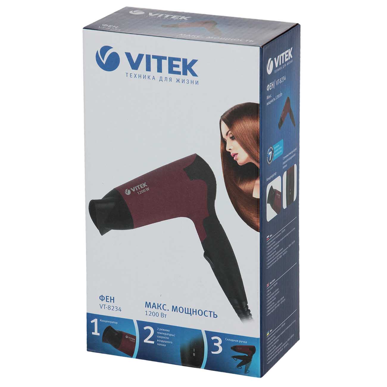 Вы можете купить Фен Vitek VT-8234 в магазинах М.Видео по доступной цене. Фен Vitek VT-8234: подробное описание, фото и отзывы реальных покупателей, характеристики, возможность скачать инструкции и подобрать аксессуары.