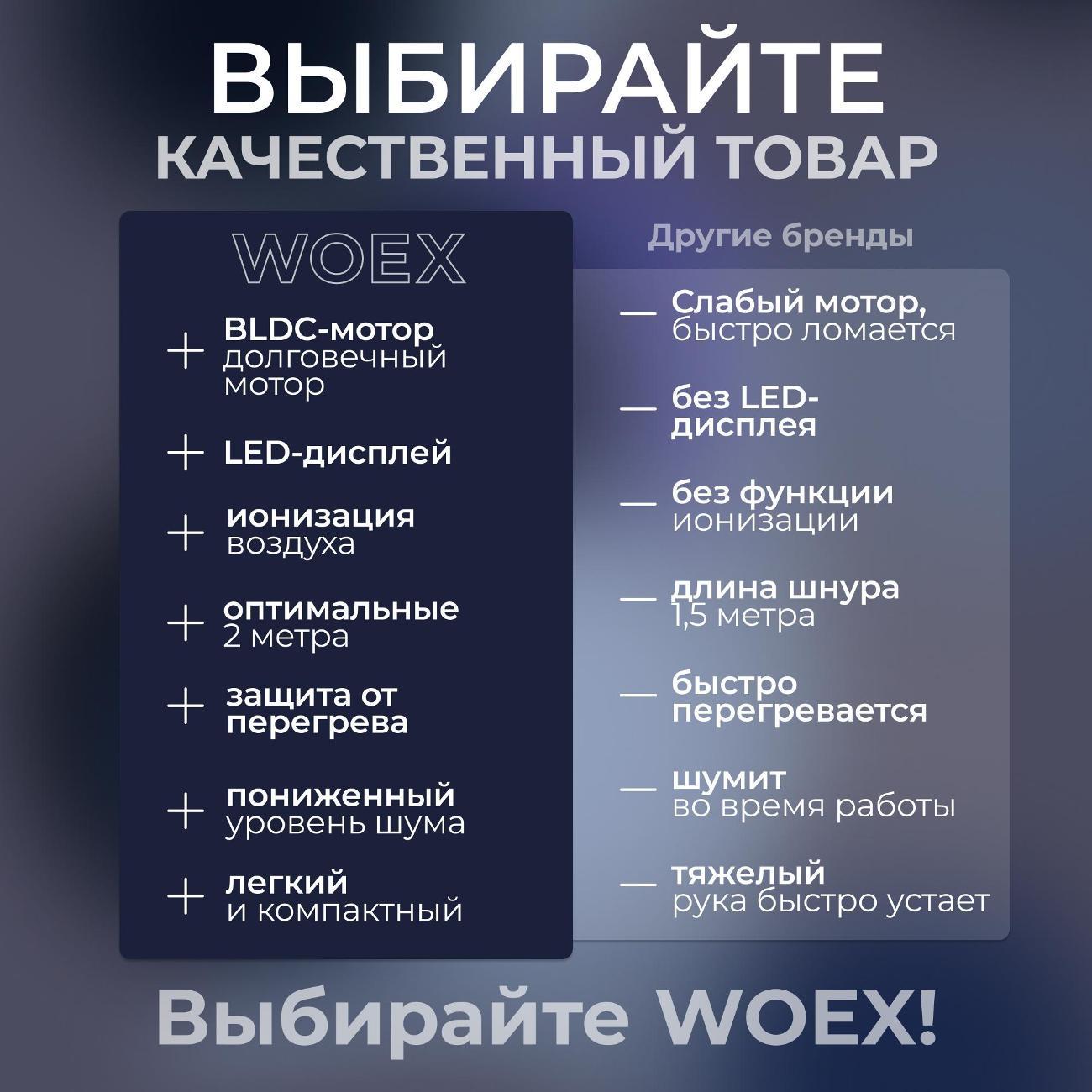Вы можете купить Фен WOEX IonCare 1510 HD-WX-1510BH в магазинах М.Видео по доступной цене. Фен WOEX IonCare 1510 HD-WX-1510BH: подробное описание, фото и отзывы реальных покупателей, характеристики, возможность скачать инструкции и подобрать аксессуары.