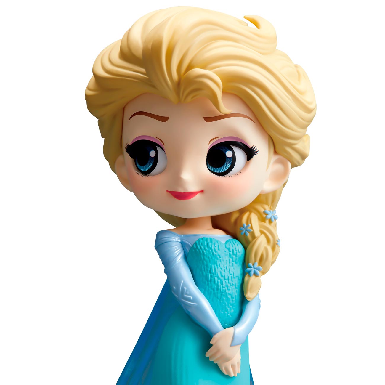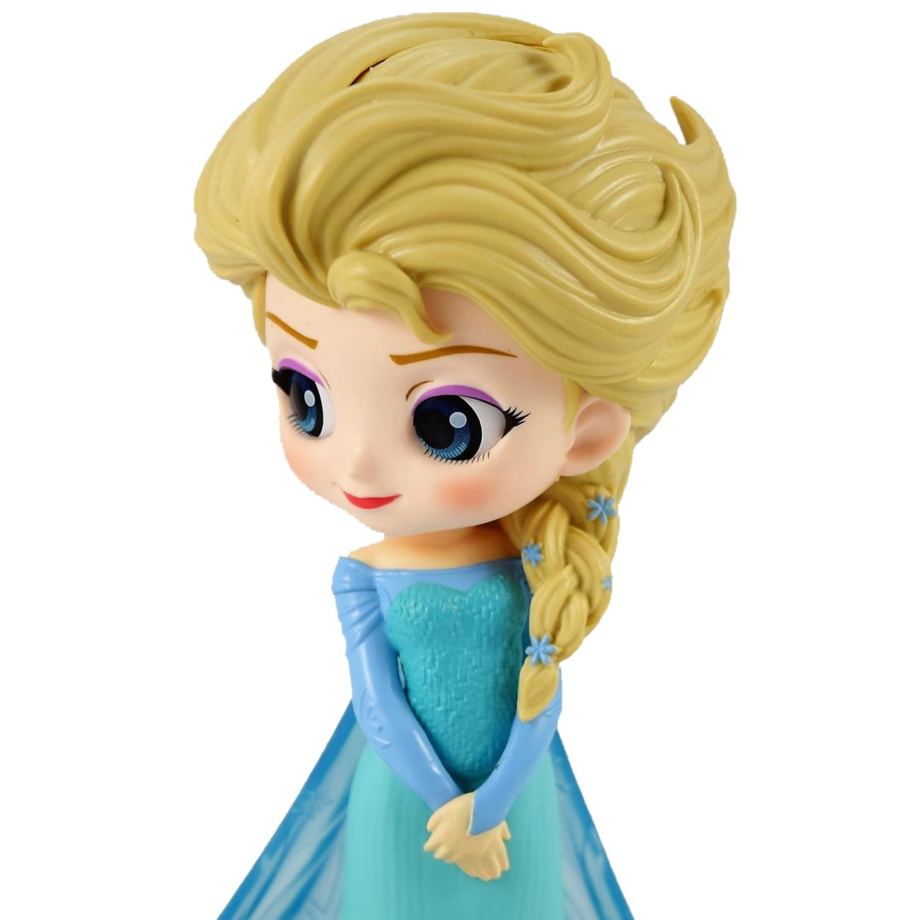 Banpresto Disney Characters – это уменьшенная копия принцессы Эльзы из мультфильма «Холодное сердце». Коллекционная миниатюра выполнена из прочного винила и в точности повторяет облик своего прототипа. Куколка одета в длинное голубое платье и плащ, а её светлую косу украшают аксессуары в виде цветов. Большие выразительные глаза девушки широко распахнуты и сразу обращают на себя внимание.