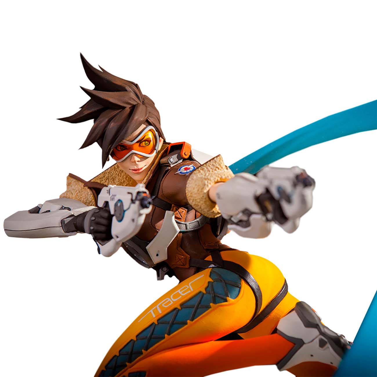 Трейсер, образ которой представляет фигурка, является неуловимым убийцей дальнего боя. Используя временной сдвиг и скачок, она мгновенно перемещается по карте и застаёт своих противников врасплох.