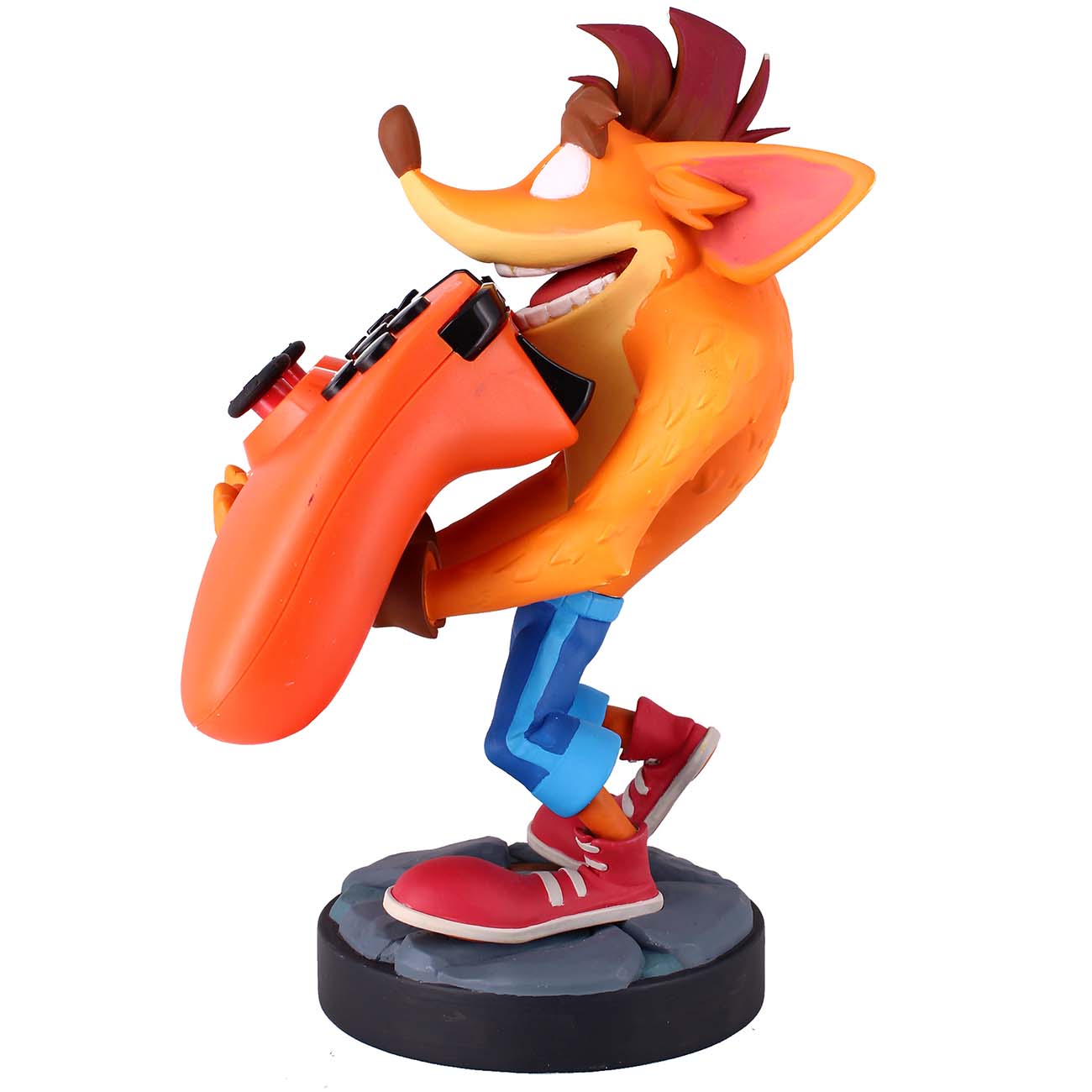 Если смотреть со стороны на это чудо, то выглядит фигурка красиво, но до тех пор, пока не посмотришь на неё вблизи. Детализация и покраска плохие, на фото смотрится намного лучше, большие и не красивые стыки между лапами и телом. Ну и самое главное, когда геймпад кладёшь ему на лапы, постепенно фигурка не выдерживает нагрузки и наклоняется на одно колено, а так же у него опускаются лапы и геймпад скатывается. В общем стоит теперь без геймпада, как красивая фигурка))