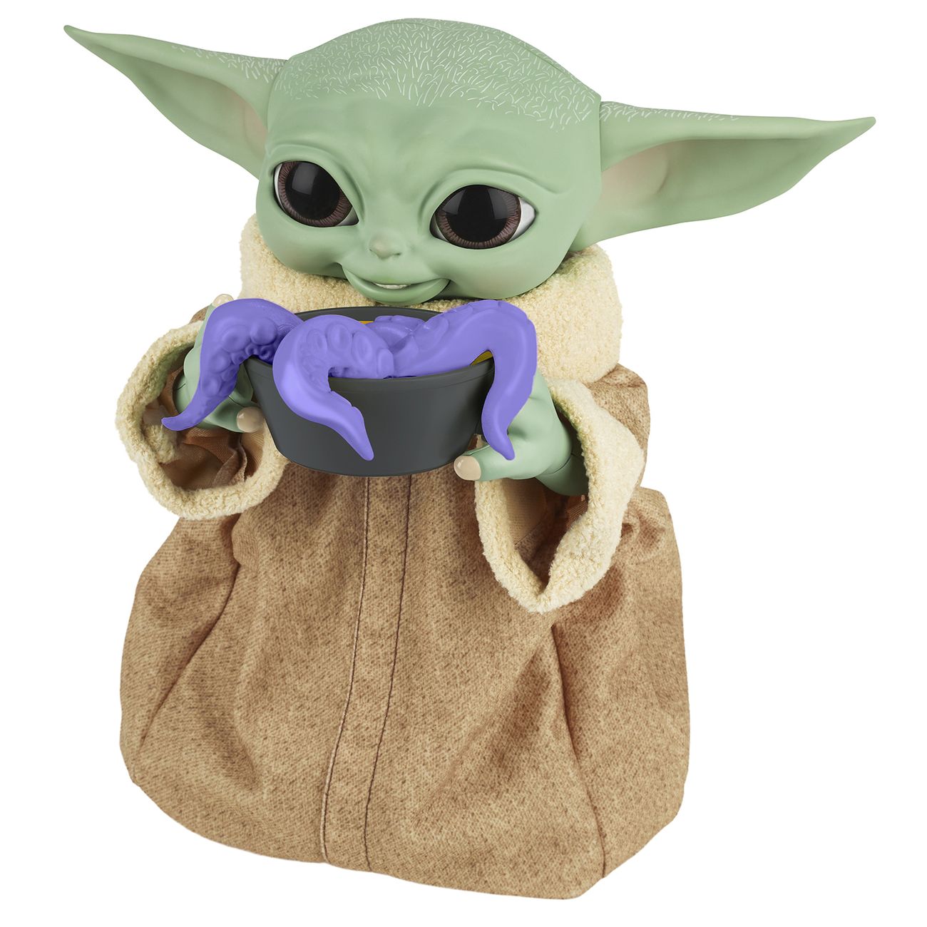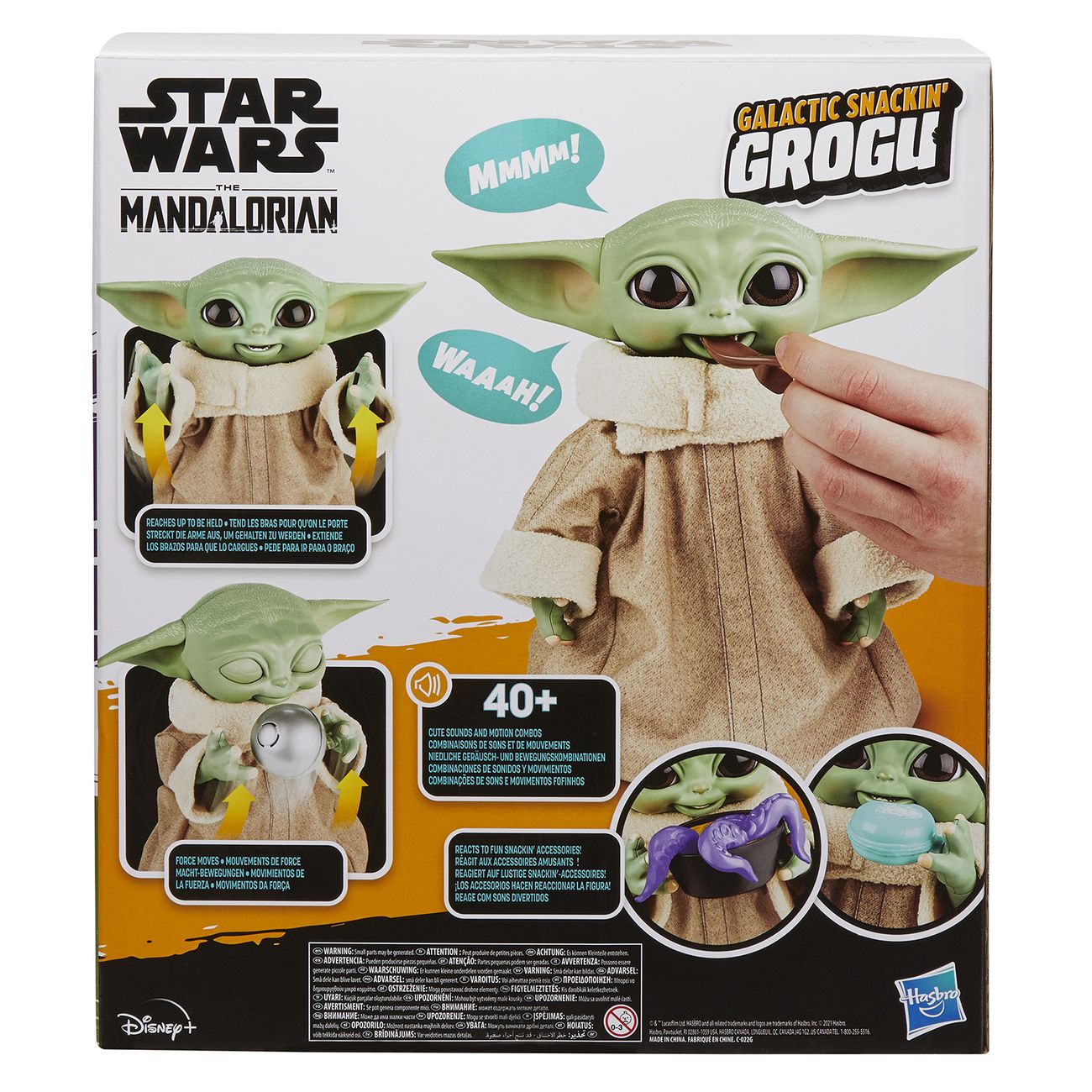 Hasbro Galactic Snackin Grogu — электронная игрушка, которая в точности повторяет облик персонажа по имени Грогу из сериала «Мандалорец». Она работает от четырех батареек типа АА (приобретаются отдельно).