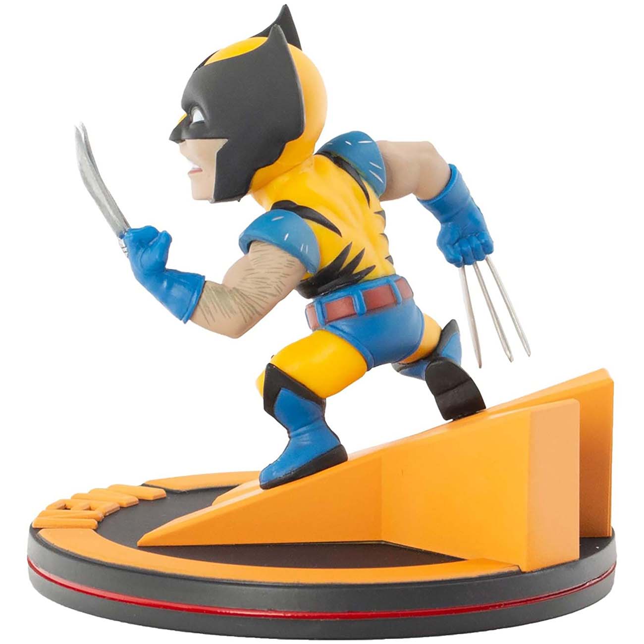 Фигурка Quantum Mechanix – это оригинальный коллекционный сувенир, созданный по мотивам вселенной Marvel. Он изображает мутанта Росомаху, одетого в жёлто-сине-чёрный костюм. Герой занял боевую стойку на вершине объёмной буквы X и выглядит весьма угрожающе.