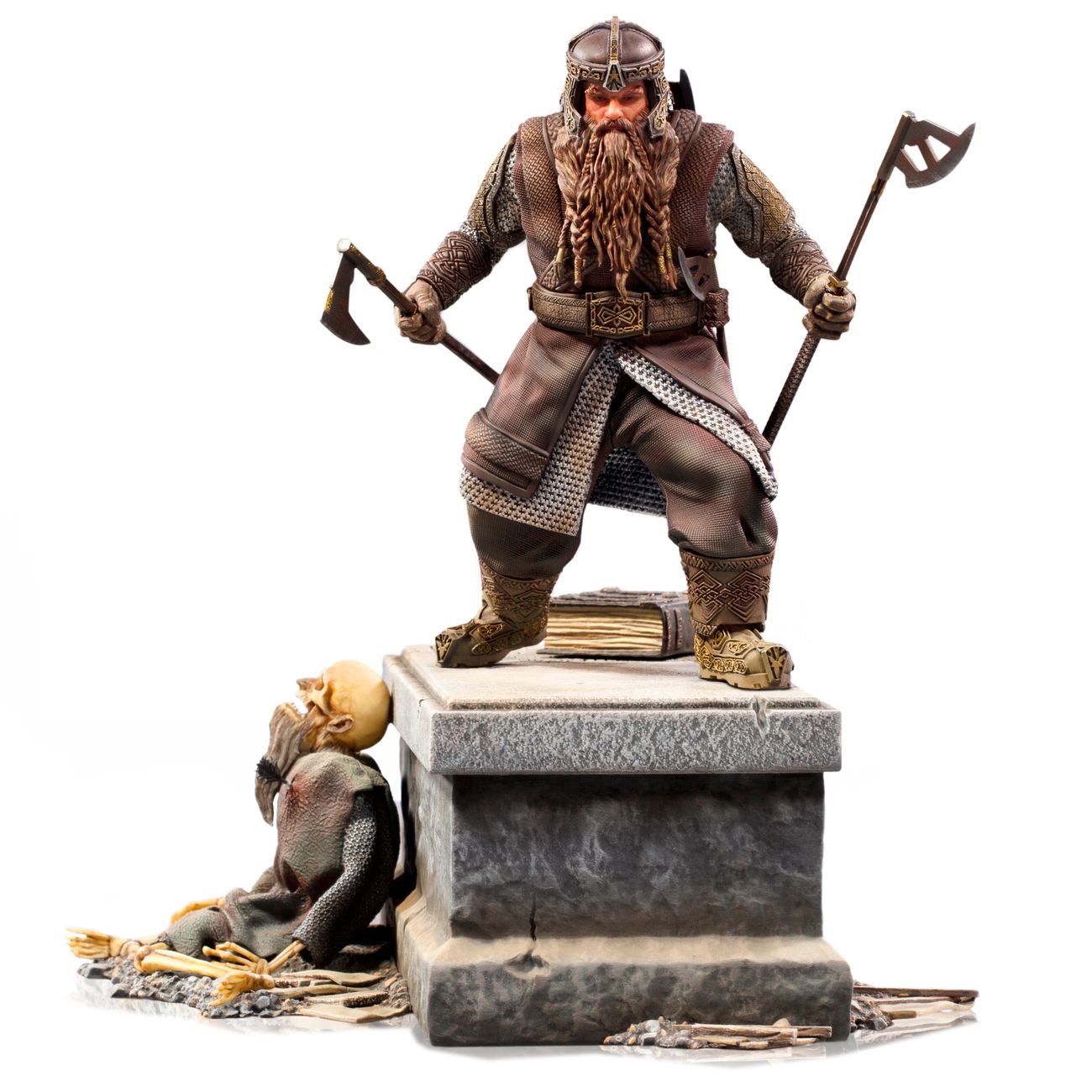 Фигурка Гимли станет настоящим украшением коллекции персонажей из вселенной Властелина колец. Статуэтка в мельчайших подробностях повторяет облик своего прототипа: можно рассмотреть каждую деталь кольчуги или рисунка на одежде, фактуру волосинок в бороде.