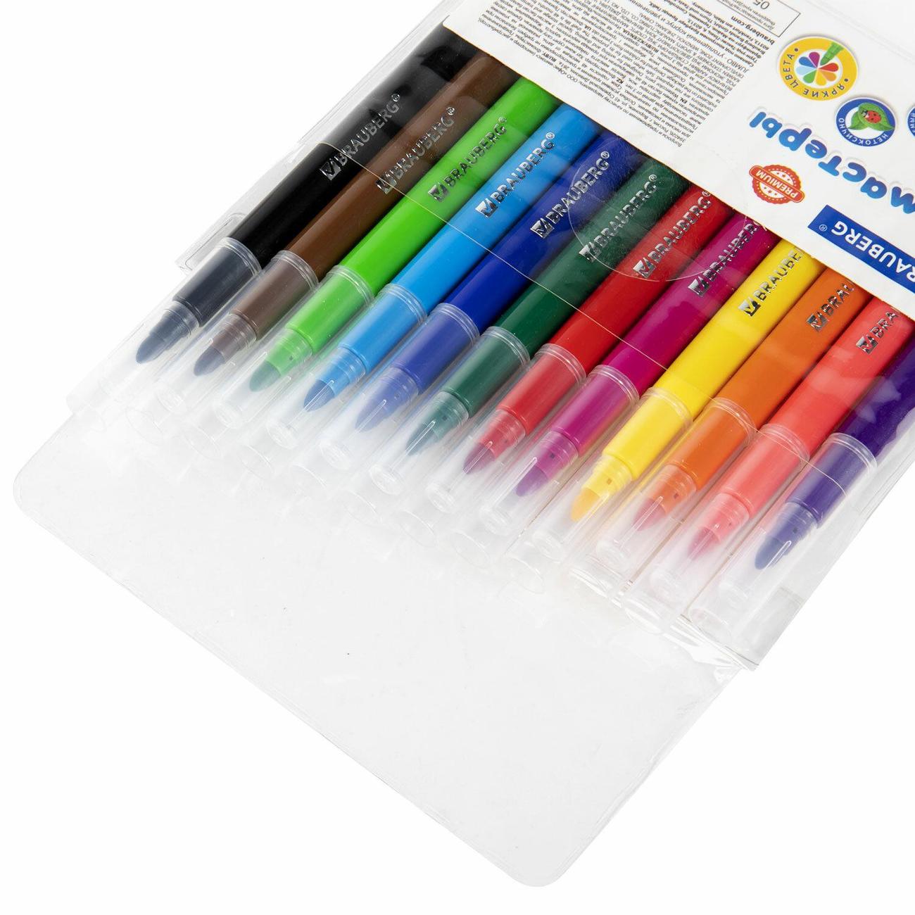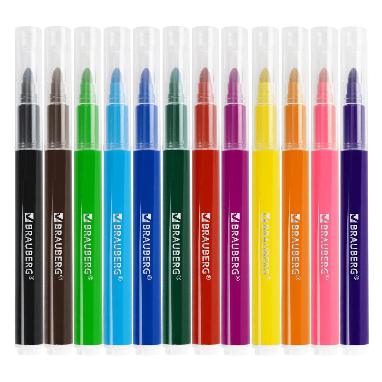 Набор фломастеров с насыщенными, яркими цветами в количестве 12 штук. Фломастеры имеют утолщенный круглый корпус, длина 140 мм, диаметр - 12 мм. Благодаря линии письма 1-3 мм процесс раскрашивания становится легким и приятным. Круглый утолщенный наконечник устойчив к продавливанию, не проваливается внутрь корпуса. Быстросохнущие чернила предотвращают смазывание рисунка. Благодаря полипропиленовому корпусу срок службы фломастеров значительно увеличивается. Колпачок оснащен специальными прорезями для вентиляции, которые делают использование фломастеров более безопасным. Фломастеры обладают экономным расходом чернил, при этом длина линии письма достигает 300 метров. Рекомендованы для детей от 3-х лет.