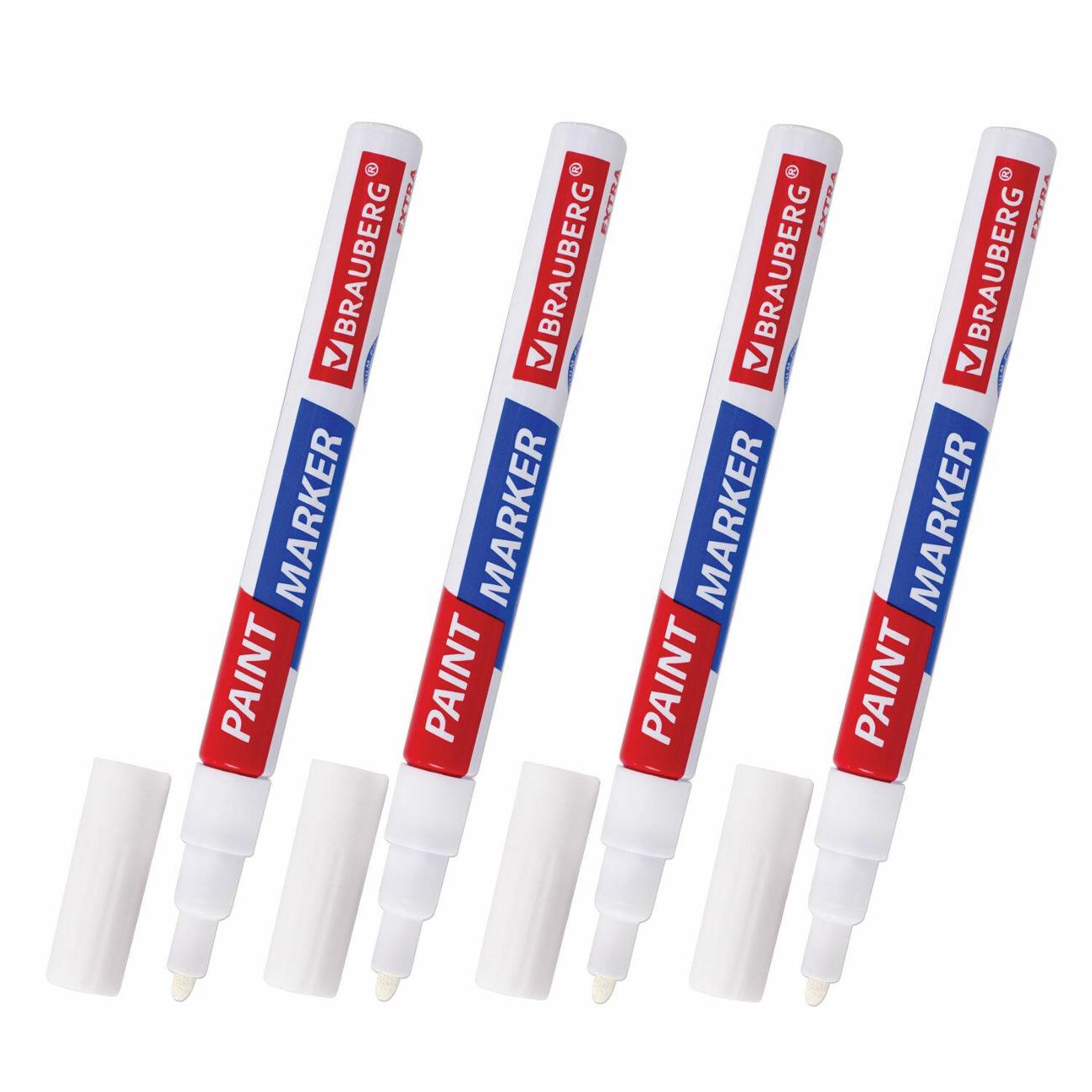 В наборе 4 маркера, заправленные высококачественными чернилами белого цвета с лаковым эффектом, которые идеально подходят для нанесения долговечной маркировки на любые поверхности. Благодаря усиленной формуле чернил краска ложится ровным слоем, полностью закрашивая поверхность. С помощью круглого прочного наконечника, выполненного из пористого акрила с шириной линии письма 2 мм, можно легко наносить средние линии. Быстросохнущие чернила предотвращают смазывание в процессе маркировки. После высыхания надписи становятся термо- и водостойкими, а также устойчивыми к выцветанию и механическому истиранию. Отлично подходит для маскировки бытовых дефектов, таких как царапины и сколы. Надежный помповый механизм подачи чернил предотвращает вытекание и разбрызгивание в процессе использования, а также преждевременное высыхание. Корпус маркера выполнен из алюминия, внутри находятся 2 металлических шарика для взбалтывания краски. Цвет колпачка соответствует цвету чернил.