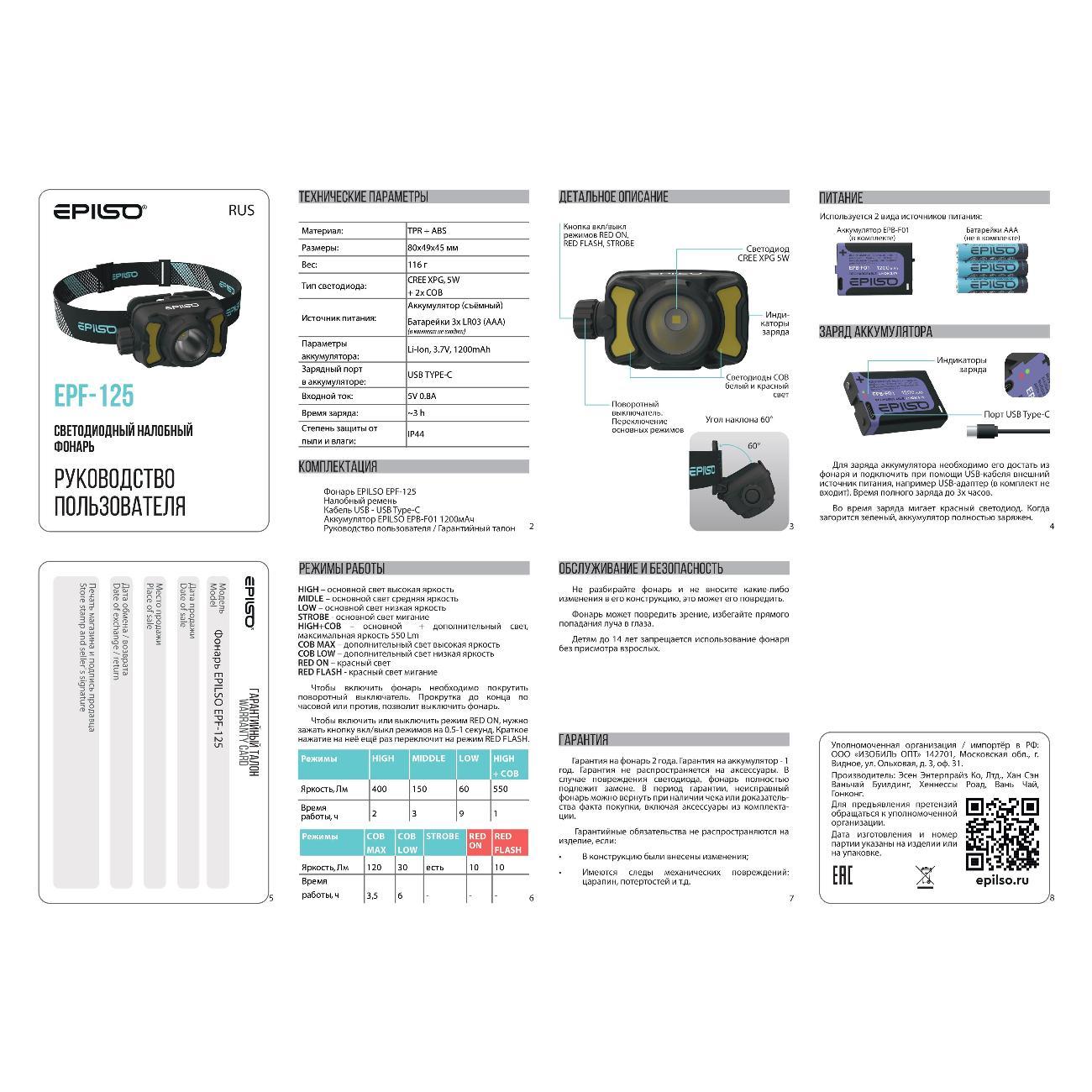 Вы можете купить Фонарь налобный EPILSO EPF-125 в магазинах М.Видео по доступной цене. Фонарь налобный EPILSO EPF-125: подробное описание, фото и отзывы реальных покупателей, характеристики, возможность скачать инструкции и подобрать аксессуары.