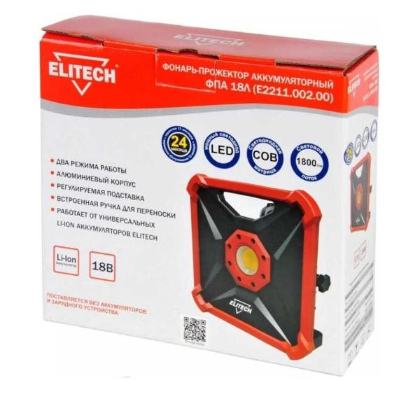 Фонарь-прожектор Elitech E2211.002.00 работает от одной LED-лампы, излучающей световой поток белого цвета 1800 лм. Длина луча составляет 50 м. Максимальное время работы устройства — 3,5 ч. Предусмотрены два варианта включения. Съемный аккумулятор типа Li-Ion, заряжается от сети 220 В. На пластиковом складном корпусе расположен выключатель, сверху встроена ручка для переноски. Габаритные размеры устройства — 7,5х24х23,2 см. Диаметр отражателя составляет 3 см. Цвет — красный. Вес составляет 1200 г. Зарядное устройство идет в комплекте.