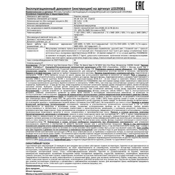 Вы можете купить Фонарь ручной Camelion LED29361 в магазинах М.Видео по доступной цене. Фонарь ручной Camelion LED29361: подробное описание, фото и отзывы реальных покупателей, характеристики, возможность скачать инструкции и подобрать аксессуары.