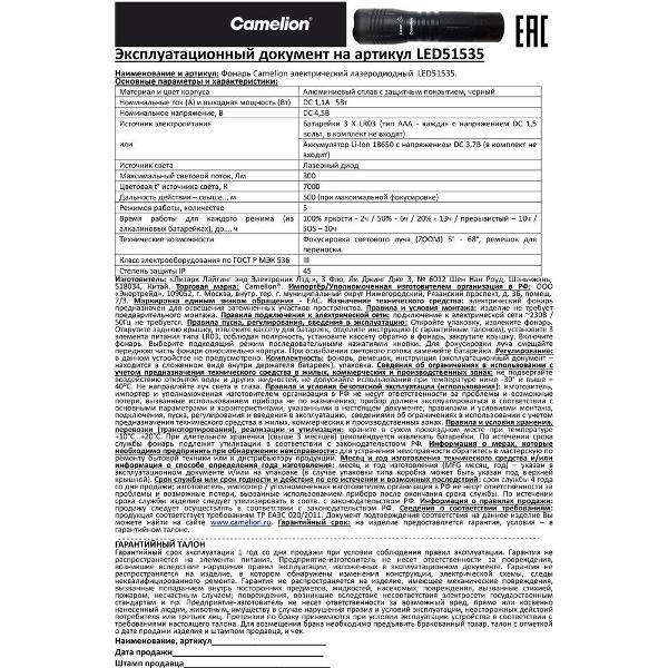 Вы можете купить Фонарь ручной Camelion LED51535 в магазинах М.Видео по доступной цене. Фонарь ручной Camelion LED51535: подробное описание, фото и отзывы реальных покупателей, характеристики, возможность скачать инструкции и подобрать аксессуары.