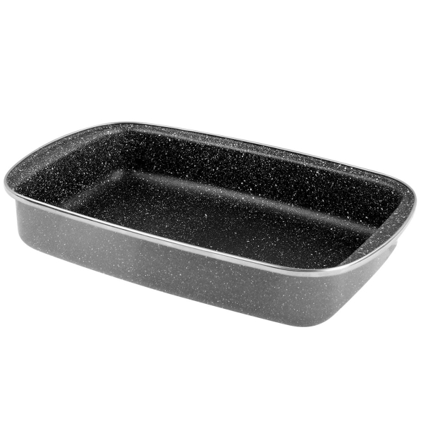 Корпус формы для выпечки покрыт стеклоэмалью. Внутренние размеры составляют 33х22х6 см. Габаритные размеры: высота — 6,5 см, ширина — 40,5 см, глубина — 25 см. Вес — 1,15 кг, объем — 4 л, форма — прямоугольная.