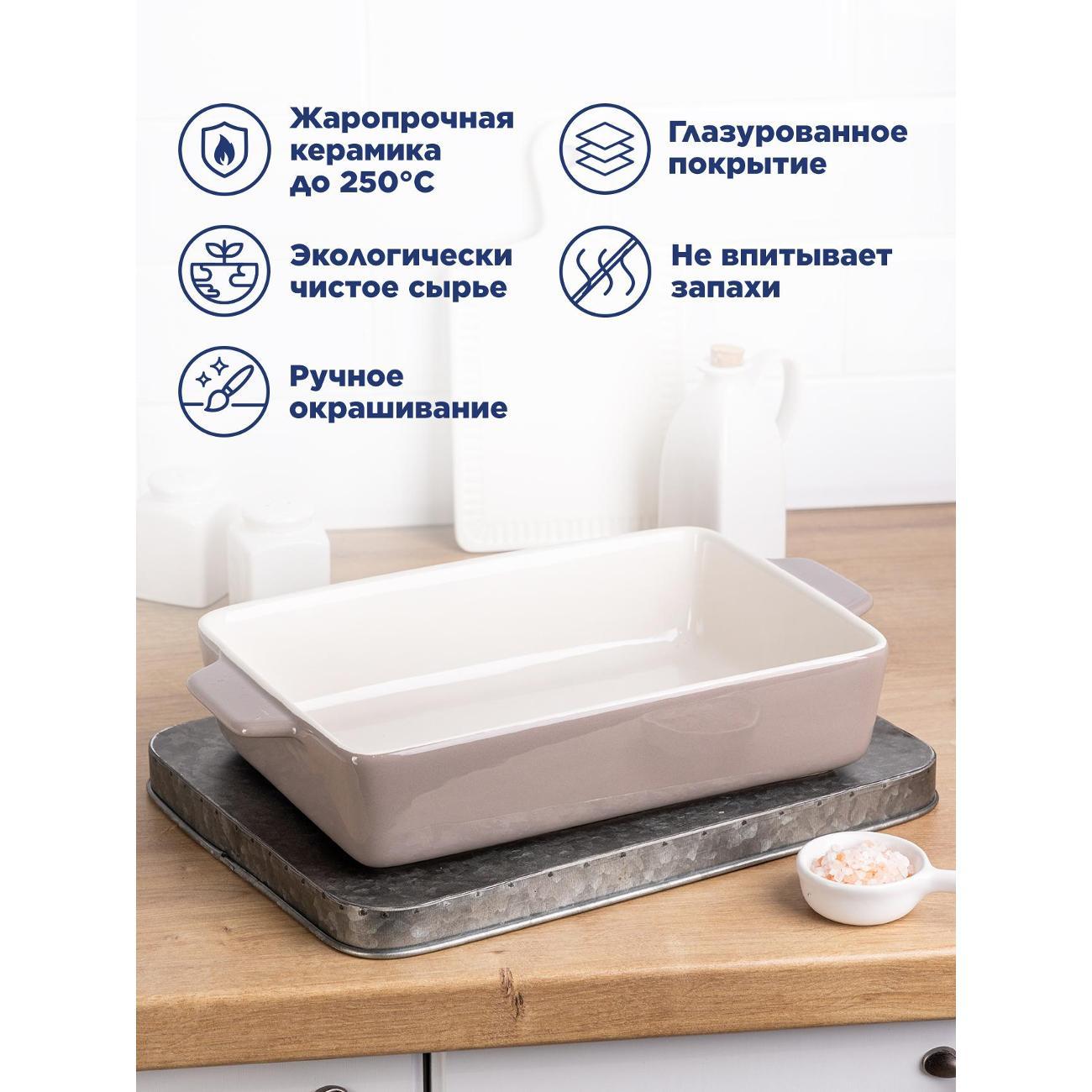 Сразу оценила качество материала. Можно достать из холодильника и поставить в разогретую духовку без риска трещин. Дно толстое, благодаря этому ничего не пригорает. Использую для разных блюд, от сладкой выпечки до рыбы, запахи не впитываются и не передаются следующим блюдам. Форма стоит устойчиво, не скользит по поверхности. Глазурь качественная, без пор и неровностей.
