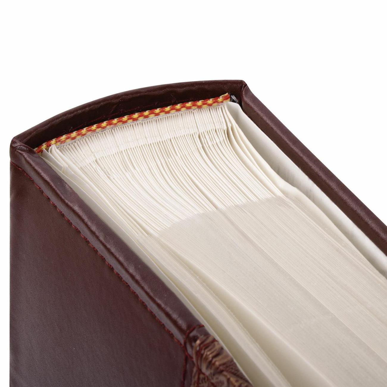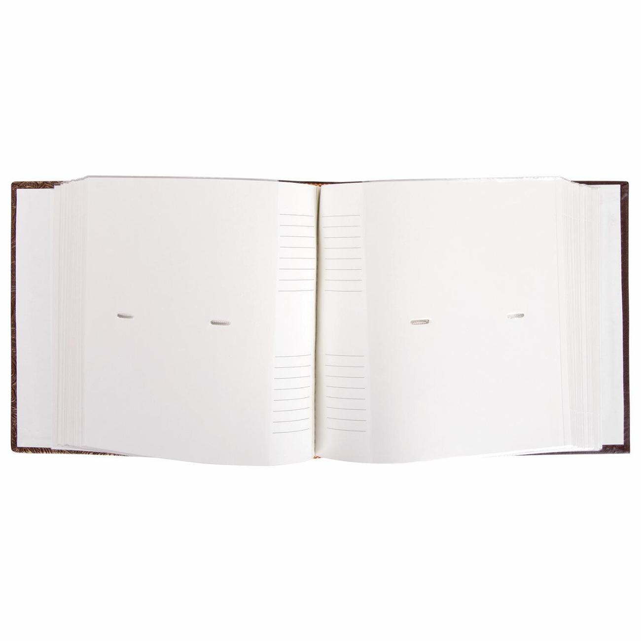 Состоит из 75 бумажных листов размером 15,5х21 см с карманами и вмещает 300 фотографий размером 10х15 см по 2 штуки на странице. Обложка фотоальбома в теплых тонах скомбинирована из эффектных материалов под гладкую и фактурную кожу. Фотоальбом с книжным переплетом отличается повышенной прочностью и долгим сроком службы. Размер - 20,7х21,8 см.