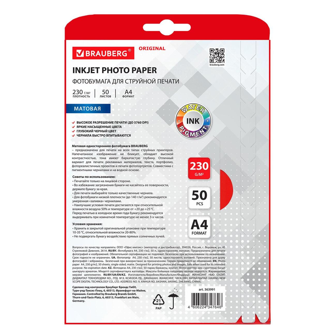 Ознакомьтесь с отзывами реальных покупателей и пользователей товара Фотобумага для принтера Brauberg матовая А4 230г/м2 50л 363991 на сайте М.Видео.