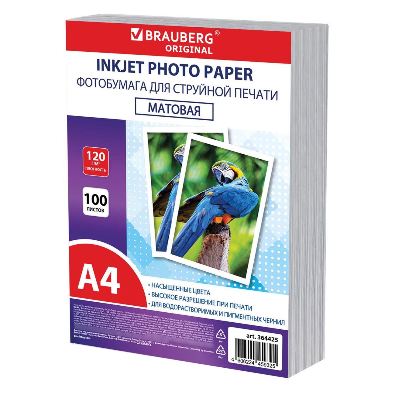 Вы можете купить Фотобумага для принтера Brauberg ORIGINAL А4 120г/м2 100л (364425) в магазинах М.Видео по доступной цене. Фотобумага для принтера Brauberg ORIGINAL А4 120г/м2 100л (364425): подробное описание, фото и отзывы реальных покупателей, характеристики, возможность скачать инструкции и подобрать аксессуары.