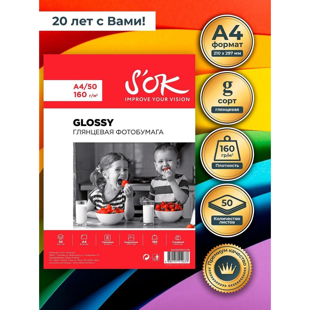 Вы можете купить Фотобумага для принтера S'ok SA4160050G-PE в магазинах М.Видео по доступной цене. Фотобумага для принтера S'ok SA4160050G-PE: подробное описание, фото и отзывы реальных покупателей, характеристики, возможность скачать инструкции и подобрать аксессуары.